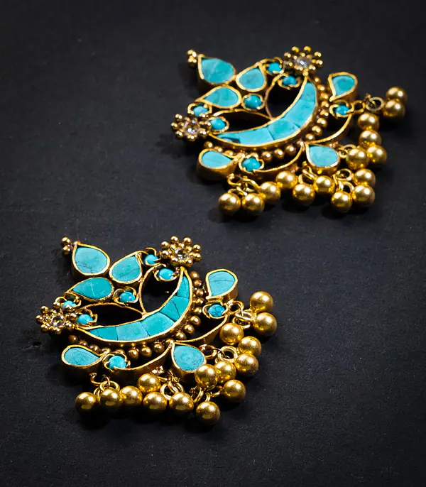 Turquoise Silver Gold Jhumka